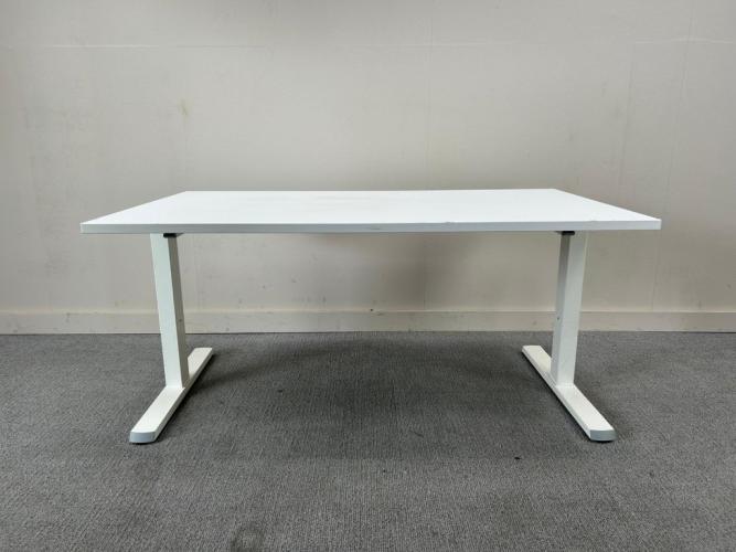 1x OSMOZ bureautafel H65xD80xB140 - Wit/Melamine/Wit metaal, enkele gebruikssporen, hoogteverstelmechanisme beschadigd (V0366)