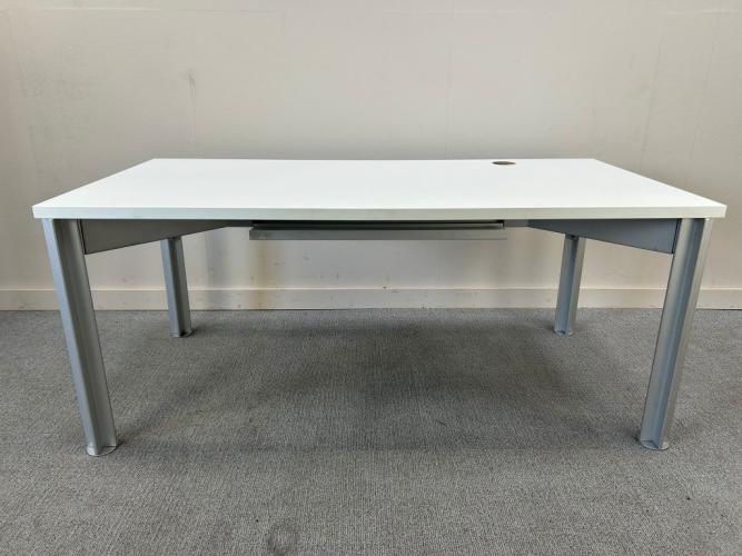 1x BULO bureautafel H78xD80xB160 - Wit/Melamine/Metaal, enkele gebruikssporen (V0383)