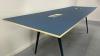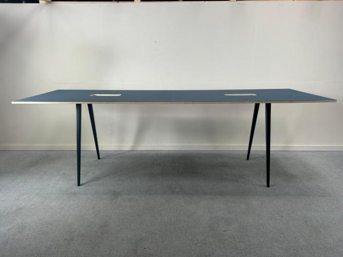 1x Vergadertafel B360xD120xH110 - Blauw/Melamine/Zwart Metaal, met gebruikssporen, staat kan variëren per item (V0452)