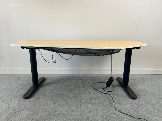 1x IKEA Elektrisch Zit-Sta Bureau B160xB80xH125-64 - Hout/Melamine/Zwart Metaal, met enkele gebruikssporen (V0485)
