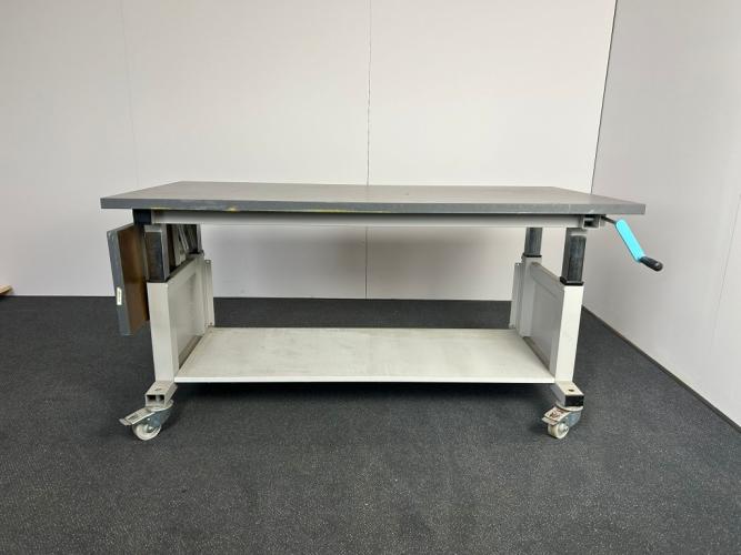 1x Werktafel B155-185xD75 - Grijs/Melamine/Wit Metaal, met opvallende schade en gebruikssporen (V0393)