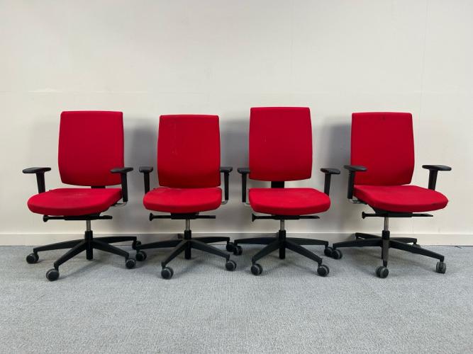 Set van 4x OSMOZ Bureaustoel - Rood/Stof/Kunststof, met gebruikssporen, licht verzadigde stof op enkele units (V0119)