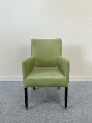 1x Ontvangstoel - Groen/Kunstleer/Zwart Metaal, met enkele gebruikssporen en plooien op het zitvlak (V0219)
