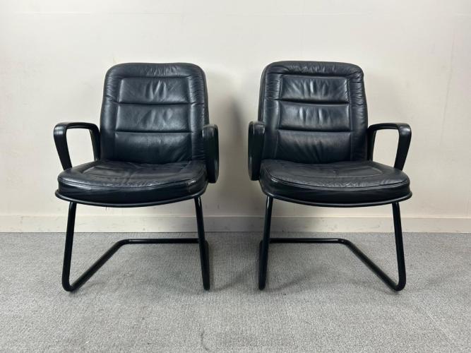 Duo van 2x Ontvangstoel - Zwart/Leder/Zwart Metaal, met gebruikssporen, stofverzadiging (V0463)