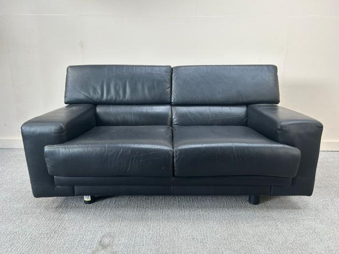 1x Zetel 2-zit H80xB155xD80 - Zwart/Kunstleer, met enkele gebruikssporen en stofverzadiging (V0361)