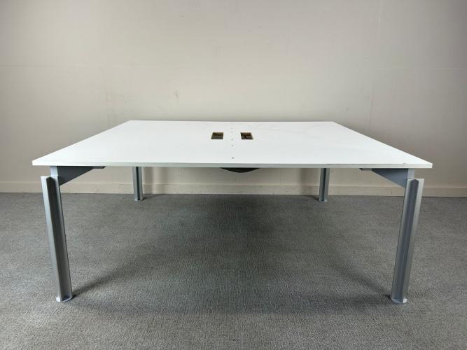 1x BULO 2p-workbench H60-80xB180xD160 - Wit/Melamine/Metaal, in goede staat, komt met 2 kabeldoorvoeren (V0524)