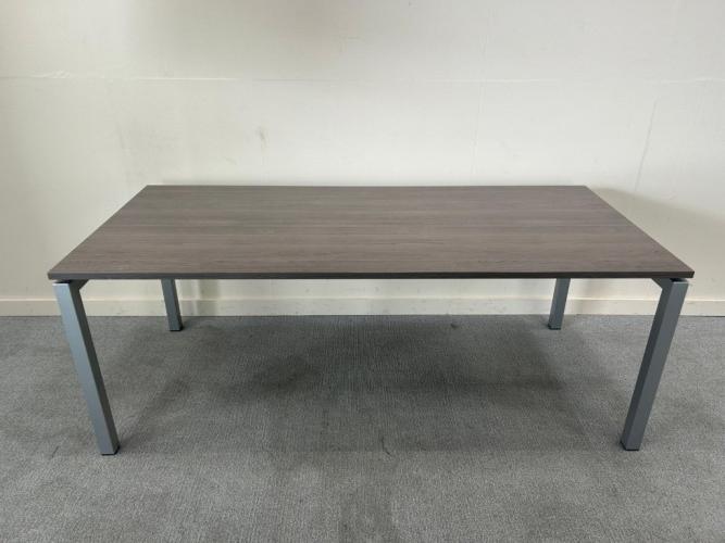 1x Bureautafel H75xB200xD90 - Donker hout/Melamine/Metaal, in goede staat, kan variëren per item, donker houten top op metaal onderstel (V0504)