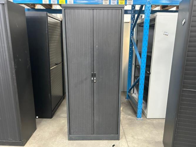 1x TDS hoge verticale roldeurkast H195xB80xD48 - Zwart/Metaal, met gebruikssporen, sleutel aanwezig (V0515)