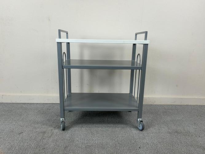 1x Dienstwagentje - Grijs/Metaal, enkele gebruikssporen, metalen dienstwagen met 3 schabben (V0467)