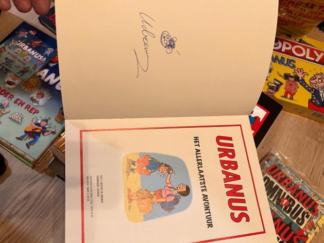 Urbanus kplt reeks+LP's+puzzels+2beeldjes getekend+boeken gesigneerd+Monopoly+ T-shirt