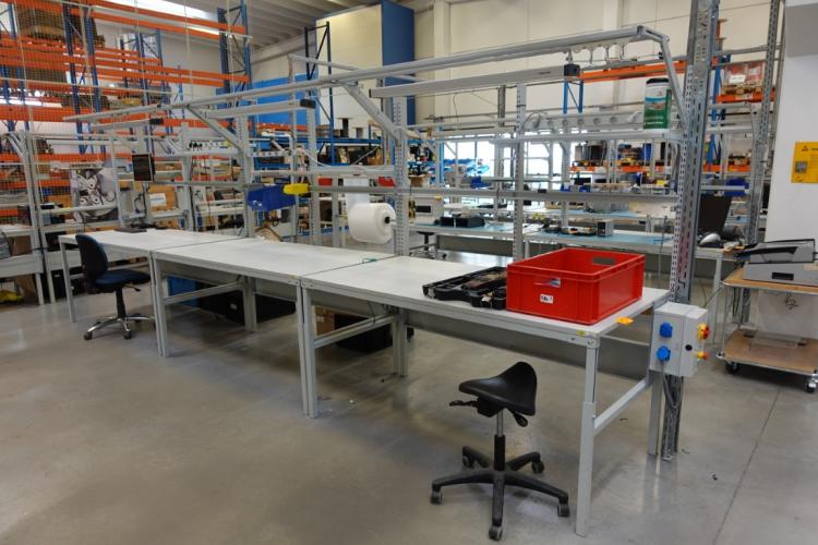 1800x900 in hoogte verstelbaar, inclusief de houder met verlichting en stopcontacten, bureaustoelen,...)
