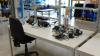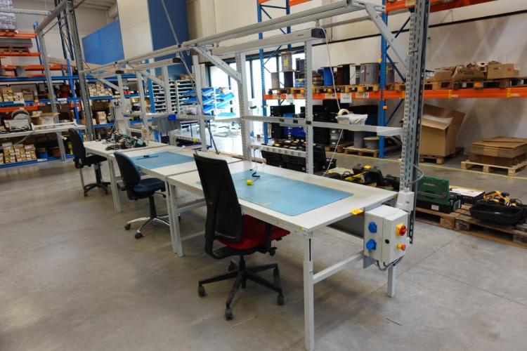 1800x900 in hoogte verstelbaar, inclusief de houder met verlichting en stopcontacten, bureaustoelen,...)