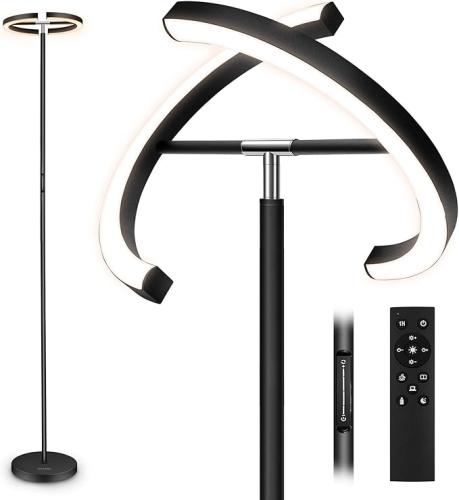 Gebruikssporen, getest en werkend, volledig, ok, originele verpakking ontbreekt, FIMEI Staande lamp, staande lamp met afstandsbediening en touch-bediening, 3000 K-6000 K, kleurtemperatuur en continu dimmen, led-vloerlamp op standaard voor woonkamer, slaapkamer, kantoor, zwart, B0BY7TQ5TM