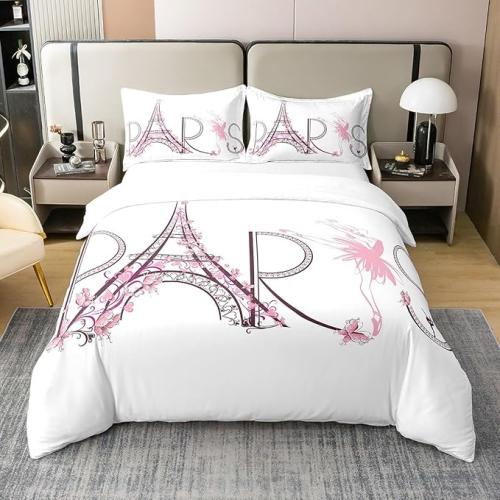 Ongeopend, in seal, Homewish 100% Katoen, Dekbedovertrek 240x260 Eiffeltoren, Ballerina Beddengoed Set voor Klassieke Dansliefhebbers, Parijs Beddengoed Set voor Meisjes Vrouwen, Bloemenmotief Roze Hart, B0CTQBHZV7