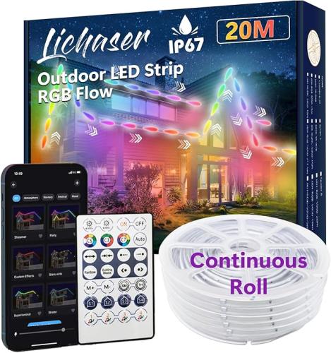 Intensieve gebruikssporen, getest en werkend, ok, bevestigingen ontbreken, Lichaser RGB+IC 20m waterdichte LED-strip voor buiten, doe-het-zelf, achtervolging, segment LED-strip, werkt met BT-app en RF-afstandsbediening voor buiten, B0CNC4DP7V