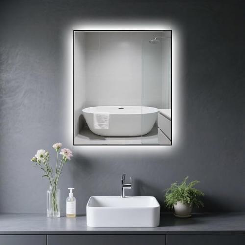 Ongebruikt, getest en werkend, ok, LaapDak Led-badkamerspiegel met verlichting, 60 x 70 cm, wandspiegel voor badkamer, IP54 waterdicht, koudwit, 6500 K, rechthoekig, spaarlichtspiegel,B0DK9F9N58