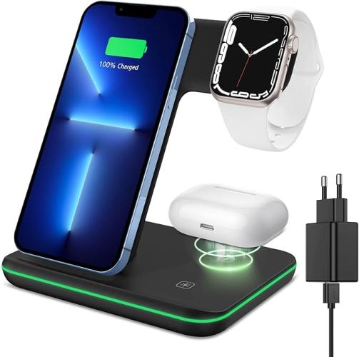 Ongebruikt, getest en werkend, ok, XIMU Draadloze Oplader 3-in-1, Qi 15W Snel Oplaadstandaard, Compatibel met iPhone 12/11/Pro Max/XR/XS Max/Xs/X/8/8P, Oplader voor Apple Watch SE/6/5/4/3/2, AirPods 2 / Pro/Samsung S20 / S10, B08YCWLG47