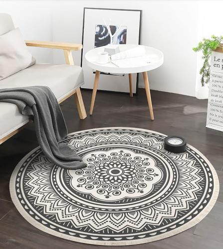 Ongebruikt, ok, Yomshi 120 cm rond tapijt, katoenen tapijt, tapijt met kwastjes, wasbaar, mandala, bedrukt, modern tapijt voor slaapkamer, woonkamer, keuken,B09Q3C42M8