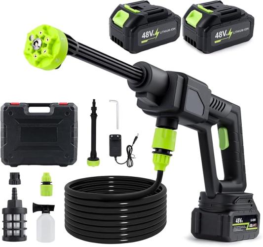 Ongebruikt, getest en werkend, ok, Accu hogedrukreiniger, max. 40 bar, 48 V, 6 l/min, mobiele hogedrukreiniger met 2 x 10000 mAh oplaadbare batterijen, 6-in-1 sproeikop, schuimsproeier en 5 m slang, snoerloze hogedrukreiniger voor auto's, B0F7KPVYPY