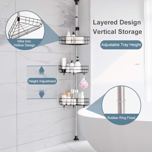 BAOYOUNI 4 lagen doucheOrganizer, verstelbare paal :vloer tot plafond,uitbreiding opslag, spanning staaf houder - zonder boren - zwart - B091KV83HB