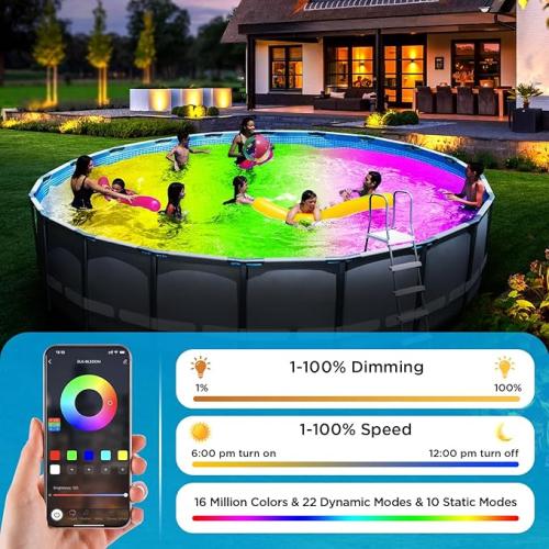 Ongeopend, LyLmLe Led-zwembadverlichting voor zwembaden met stalen wand §magnetische bevestiging) met app-bediening, 20 W RGBW, dimbaar, 800 lm, IP68 waterdicht, muzieksynchronisatie, onderwaterverlichting , B0D3G71Z2T