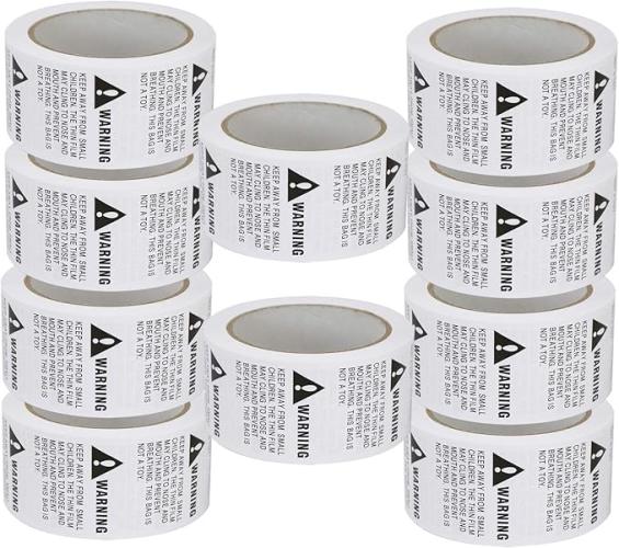 Ongeopend, BETCKEY - Witte verpakkingsetiketten/stickers met waarschuwing voor verzending, Suffocation warning in ENGELS, 50mm x 50mm, 10 Rollen/5000 etiketten B071X695G7