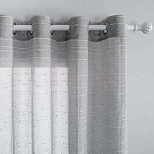 Ongeopend, MYSKY HOME Gordijnen linnenlook gordijnen woonkamer gordijn met plooiband halftransparant gordijn set van 2 natuurlijke stijl gordijn half-transparant linnen gordijnen, H 280 x B 140 cm, linnen kleur, B0CLTYBDRT