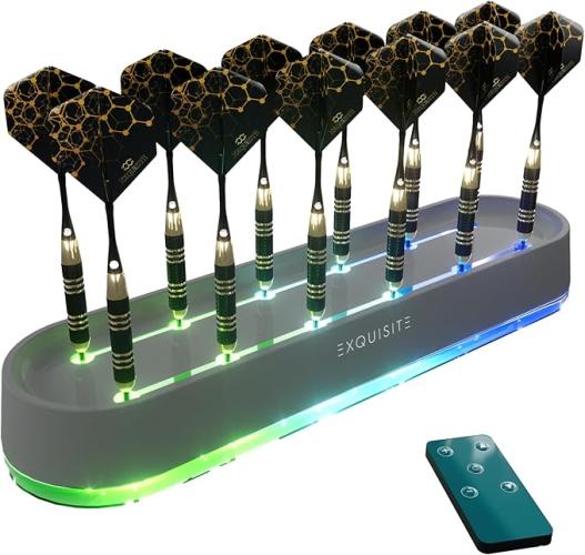 Ongeopend, ok, CC-EXQUISITE Darthouder - Grijs - Desktop RGB LED-display met afstandsbediening en aanpasbare verlichting Darts, standaard voor stalen en zachte punten, kan tot 12 darts bevatten, B0CNL22WB8