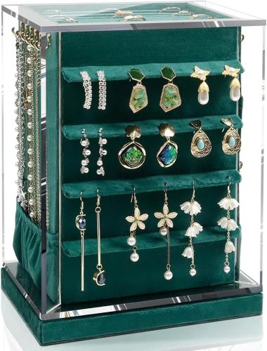 Ongeopend, KAMIER 360° draaibaar sieradendoosje met 5 schuifladen, sieradendoos en sieradenopslag voor halskettingen en oorbellen, elegante organizer, perfect opbergcadeau (groen) , B0DJ2RJ4ZH
