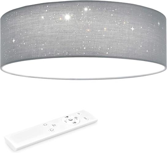 Ongeopênd, in seal, Navaris LED plafondlamp rond 22W Ø 40 cm - Stoffen plafonnière met warmwit licht & sterreneffect - Dimbare LED lamp met afstandsbediening - Lichtgrijs, B08HQY3P9V