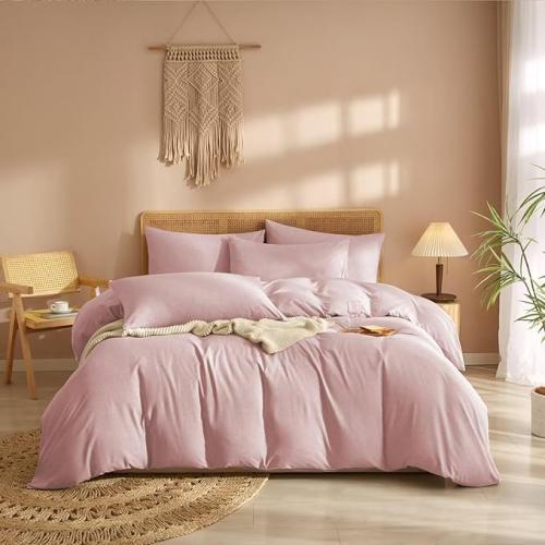 Ongeopend, ok, Luowei Dekbedovertrek Roze Katoen 220x240 cm 2-persoons Beddengoed Microvezel Beddengoed Volwassen Beddengoed Ultra Zacht Linnen met 2 Kussenslopen 65x65 cm en Ritssluiting, B0D5D1WK6D