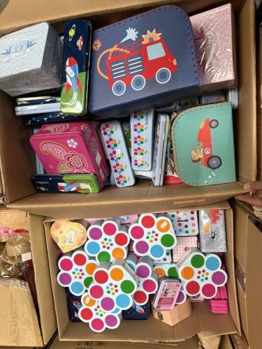 Partij dozen, blikkendozen, spaarpotten