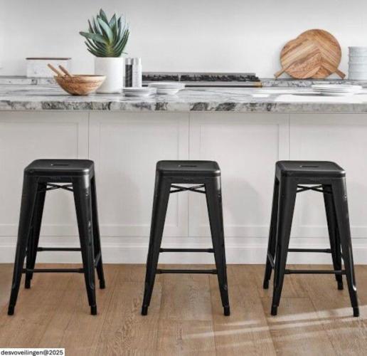 3x Barstoel zwart metaal