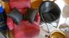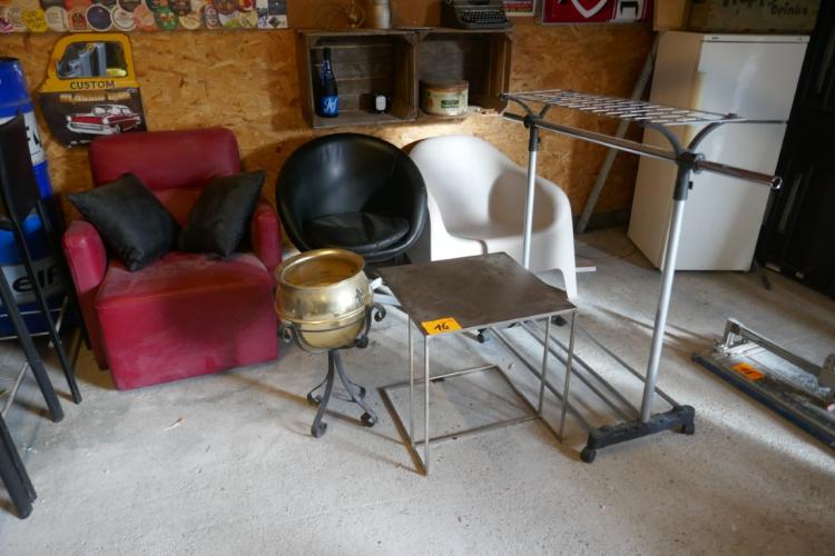 3 diverse vintage zetels + metalen bijzettafel - kledijrek - vintage asbak