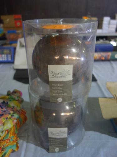 2 Grote Kerstbollen In Glas (Brons)