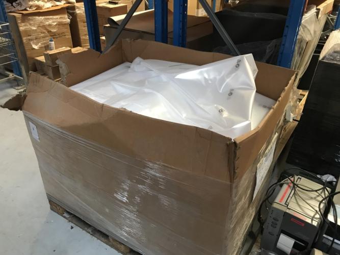 185 x 250 cm, totaal ca 500 stuks, inclusief pallet