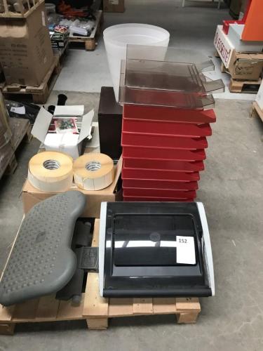 O.a. diverse opbergbakjes, etiketten, voetensteun, inbindtoestel (niet getest), …