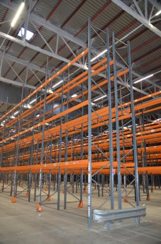 18 staanders H=8000mm (professioneel gekoppeld op 4800mm) 69 liggers L=3600mm. Incl aanrijbeveiliging.