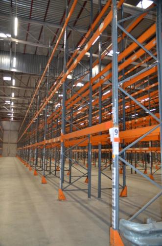 18 staanders H=8000mm (professioneel gekoppeld op 4800mm) 94 liggers L=3600mm. Incl aanrijbeveiliging.