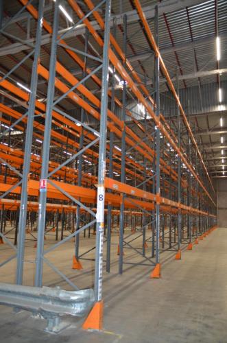 18 staanders H=8000mm (professioneel gekoppeld op 4800mm) 94 liggers L=3600mm. Incl aanrijbeveiliging.