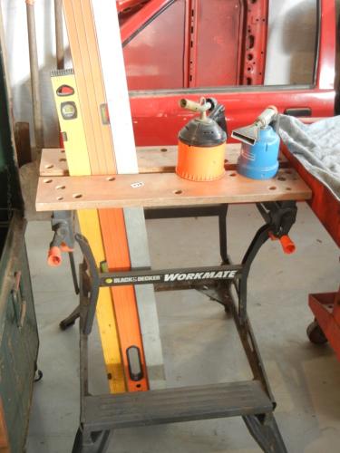 Werkbank Black en Dekker, Drie waterpassen, 2 gasbranders