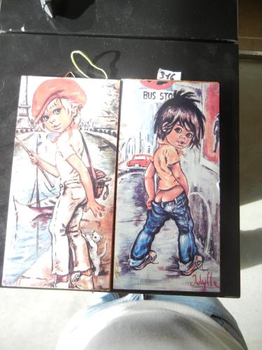 2 Beschilderde houten panelen