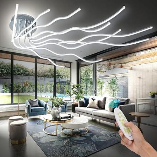 Ongebruikt, getest en werkend, volledig, ok, SHIANDAR LED-Plafondlamp (L140 cm), 10 Takken, Modern, Dimbaar Met Afstandsbediening, 3000K-6500K, Voor Woonkamer, 138W, B0BS1HF4VY