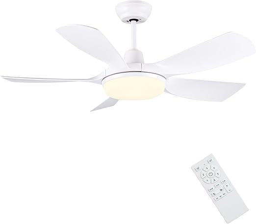 Minieme gebruikssporen, getest en werkend, volledig, ok, Newday Plafondventilator met licht en afstandsbediening, 106 cm, stille plafondventilator met dimverlichting, DC-motor, 5 vleugels, 6 snelheden, geheugenfunctie, wit, B0CPLS8XXY