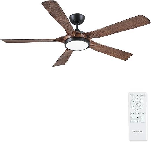 Ongebruikt, getest en werkend, volledig, ok, Newday Plafondventilatoren Houten Zwart,142cm Plafondventilator met verlichting en afstandsbediening Rustig, Plafondventilator groot met licht dimbaar, Ventilator Lamp Plafond, B0DPW45Q42
