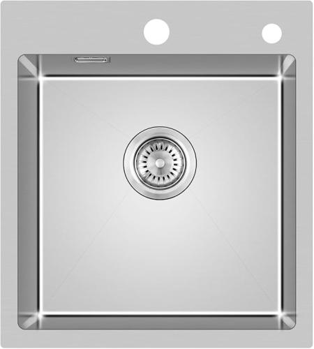 Lichte gebruikssporen, volledig, ok, lichte beschadiging aan binnenkant (zie foto's), KINKIBOS Spoelbak roestvrij staal, 45 x 50 cm, inbouwspoelbak met kraangat en afvoergarnituur en overloop, keukenspoelbak, 1 wasbak, rechthoekig, spoelbak keuken voor 45 cm onderkast, B0C99LDS6Y