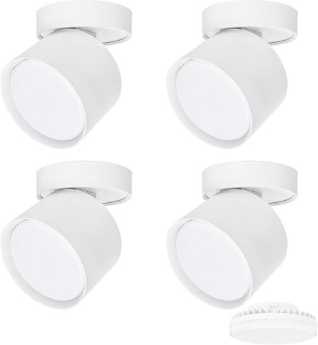 Minieme gebruikssporen, getest, ok, KYOTECH Set van 4 led-opbouwspots, draaibaar en draaibaar, Ø 84 x 80 mm, wit, plafondlamp, opbouwlamp, incl. 6 W, vervangbaar, GX53, lamp, neutraal wit, 4000 K, 550 lm, plafondlamp, led-spot, B0DLG3JJC8
