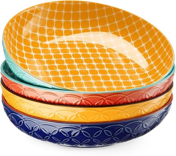 Ongebruikt, ok, DOWAN Pastakommen, grote slakommen, 8,5 inch/21,6 cm porseleinen bereidingsborden, kommen, set van 4, brede en ondiepe kommen voor keuken, pasta, salade, levendige kleuren, B09B1182XL