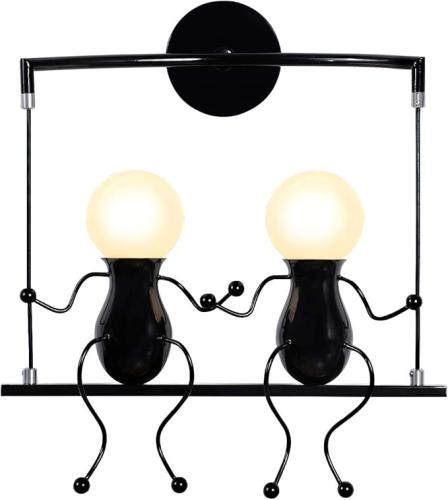 Ongebruikt, getest en werkend, KAWELL Humanoid Creatieve wandlamp, moderne wandlamp, eenvoudige kaarsen, wandlampen, Art Deco Max 60W E27, voor kinderkamer, slaapkamer, trappen, hal, restaurant, keuken, swing, zwart x 2, B07G57FTB3
