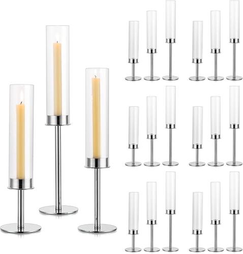 Ongebruikt, volledig, ok, Sziqiqi 18 stuks kandelaars met glas voor tafeldecoratie bruiloft – 48 cm kandelaars van metaal, modern, theelichthouder, decoratief voor open haard, eettafel, huis, decoratie, B0CF9Q477V